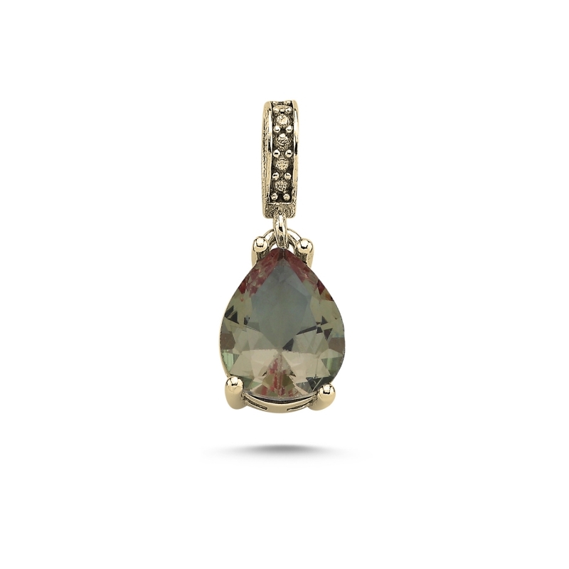 Altın Kaplama 8x10mm Damla Zultanit Zirkon Tektaş Gümüş Bayan Kolye Ucu