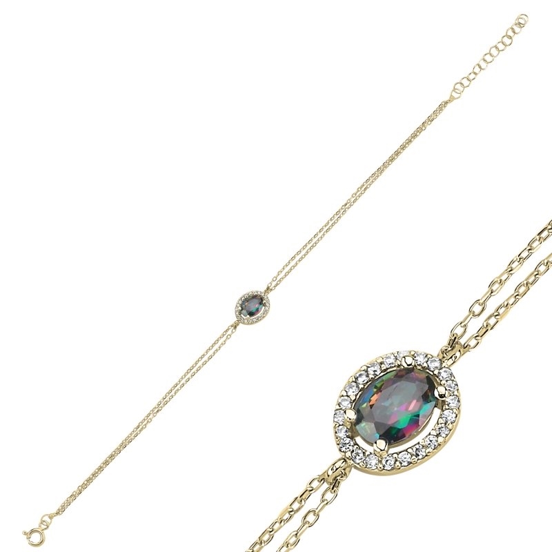 Altın Kaplama Halo Tektaş Mistik Topaz Zirkon Taşlı Gümüş Bayan Bileklik