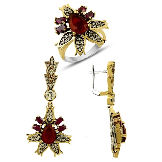 Ametist Zirkon (Mor) Taşlı Otantik Gümüş Bayan Set
