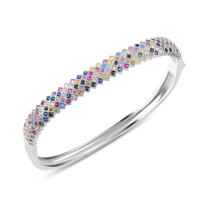 Rodyum Kaplama Karışık Zirkon Taşlı Gümüş Bilezik