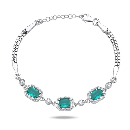 Rodyum Kaplama Paraiba & Baget Zirkon Taşlı Küp Zincirli Gümüş Bayan Bileklik