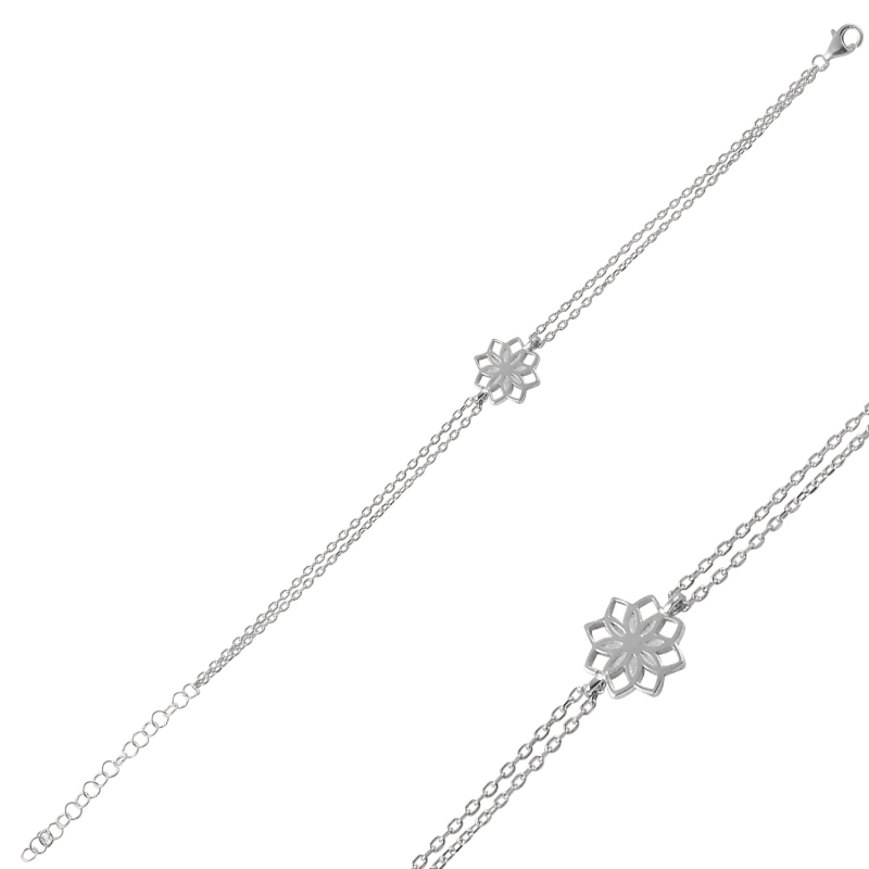 Rodyum Kaplama Çiçek Taşsız Gümüş Bayan Bileklik