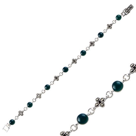 Turkuaz Markazit & Zirkon Taşlı Gümüş Bayan Bileklik