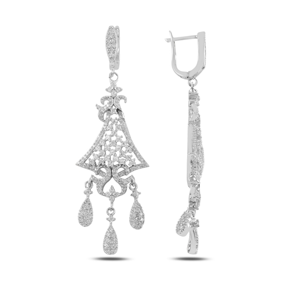 Zirkon Taşlı Püsküllü Gümüş J Küpe