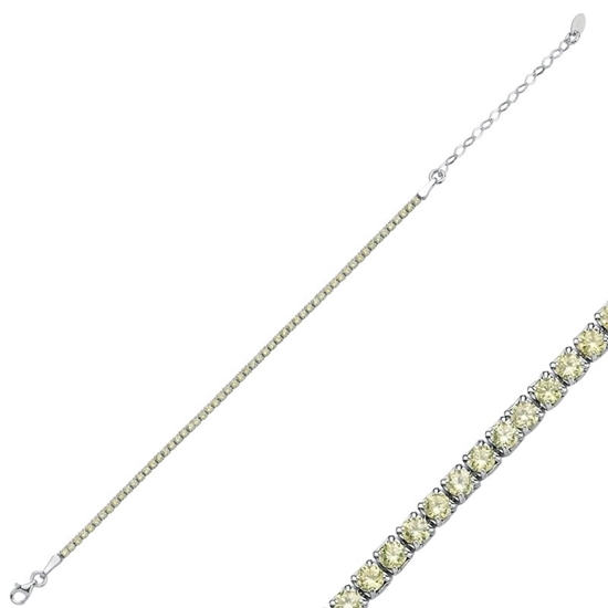 Rodyum Kaplama 2mm Sitrin & Zirkon Taşlı Suyolu Gümüş Bayan Bileklik