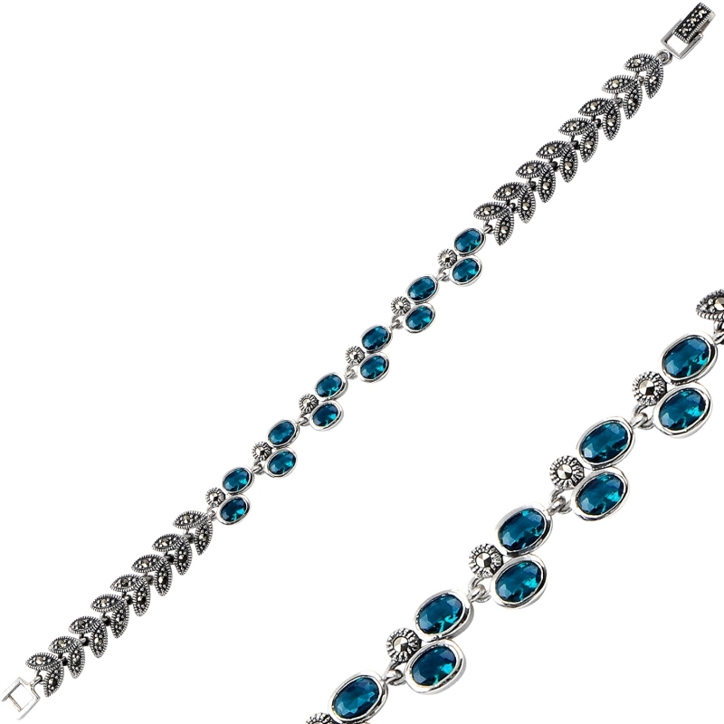 Akuamarin Zirkon & Markazit Taşlı Gümüş Bayan Bileklik