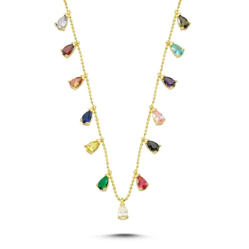Altın Kaplama Damla Karışık Renk Zirkon Taşlı Sallantılı Gümüş Bayan Kolye