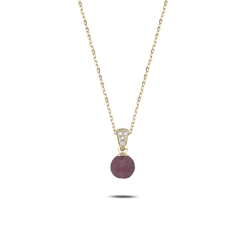 Altın Kaplama Mor Küre Gümüş Bayan Kolye