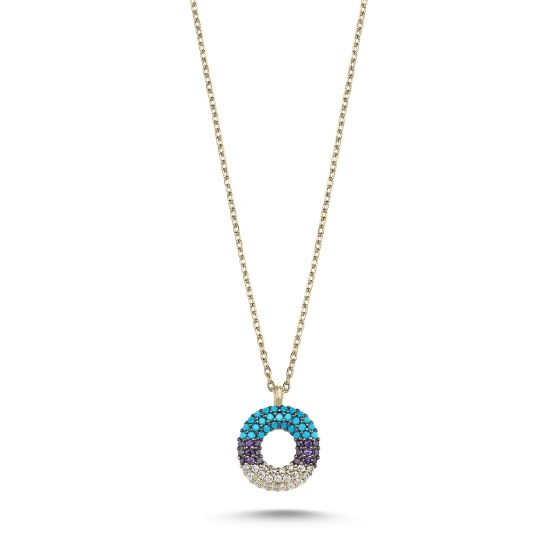 Altın Kaplama -O- Harfi Renkli Zirkon Taşlı Gümüş Bayan Kolye