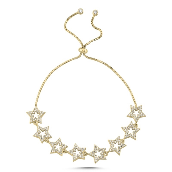 Altın Kaplama Yıldız Zirkon Taşlı Gümüş Bayan Asansörlü Bileklik