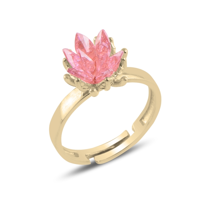 Altın Kaplama Zirkon Taşlı Lotus Çiçeği Gümüş Bayan Yüzük