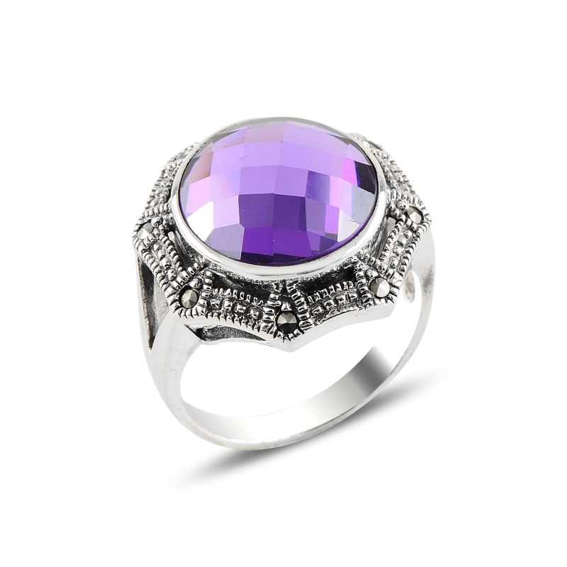 Ametist Zirkon & Markazit Taşlı Gümüş Bayan Yüzük