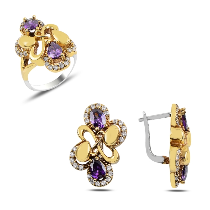 Ametist Zirkon (Mor) Zirkon Taşlı Otantik Gümüş Bayan Set