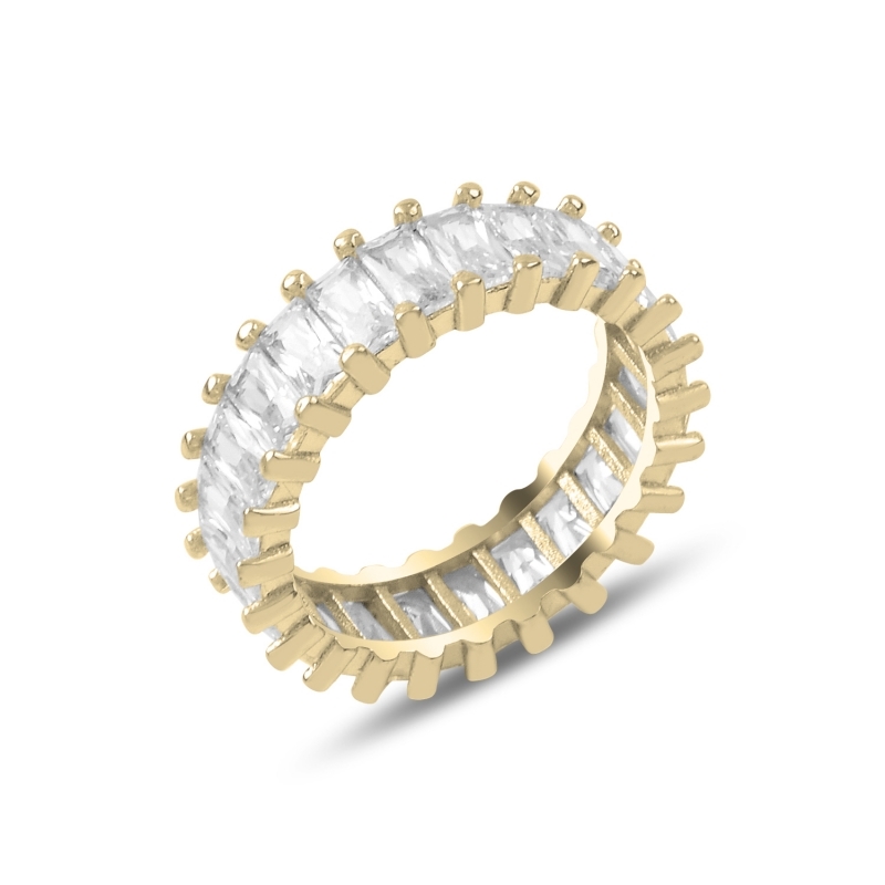 Altın Kaplama Baget Zirkon Taşlı Tamtur Gümüş Bayan Yüzük