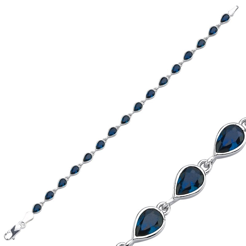 Rodyum Kaplama Damla Safir Zirkon Taşlı Suyolu Gümüş Bayan Bileklik