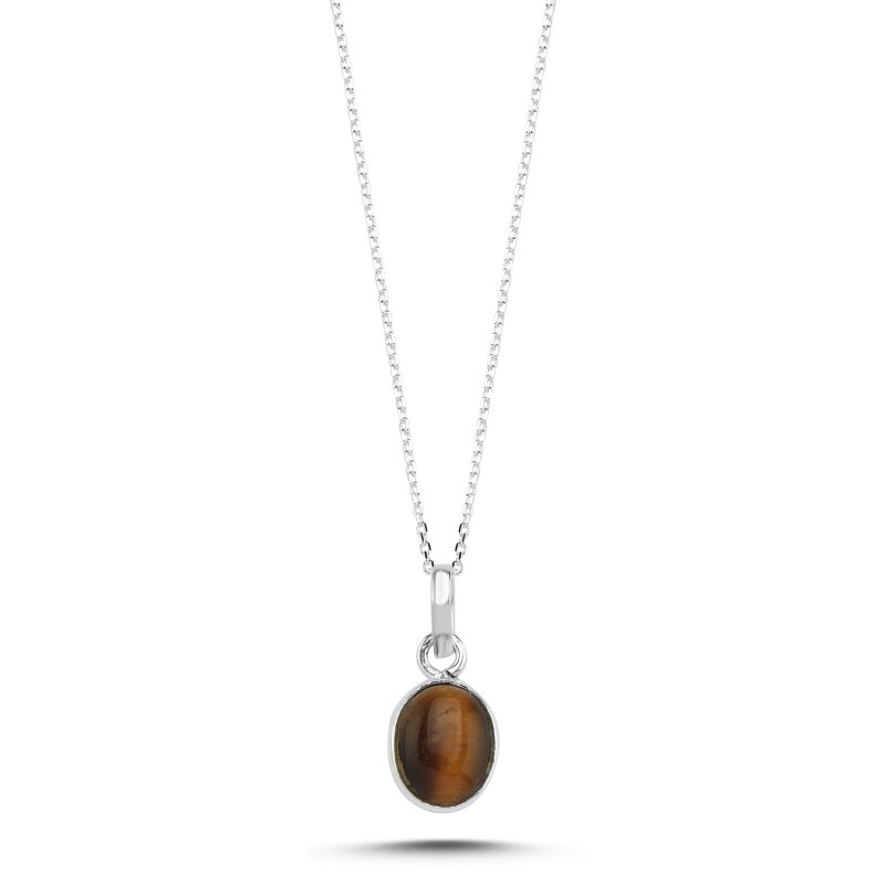 Kaplan Gözü & Oval Doğal Taşlı Kolye