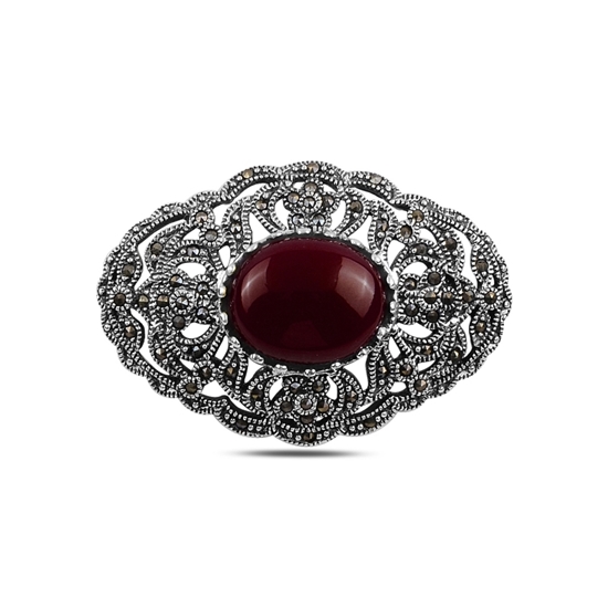 Kırmızı Akik Doğal Taş & Markazit Taşlı Gümüş Broş & Gümüş Bayan Kolye Ucu