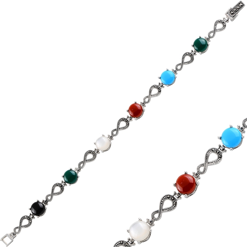 Markazit & Doğal Taşlı Gümüş Bayan Bileklik