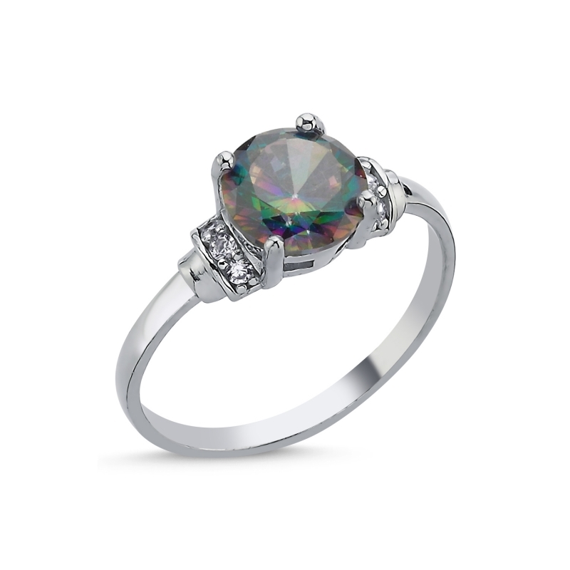 Rodyum Kaplama Mistik Topaz Zirkon Taşlı Gümüş Bayan Yüzük