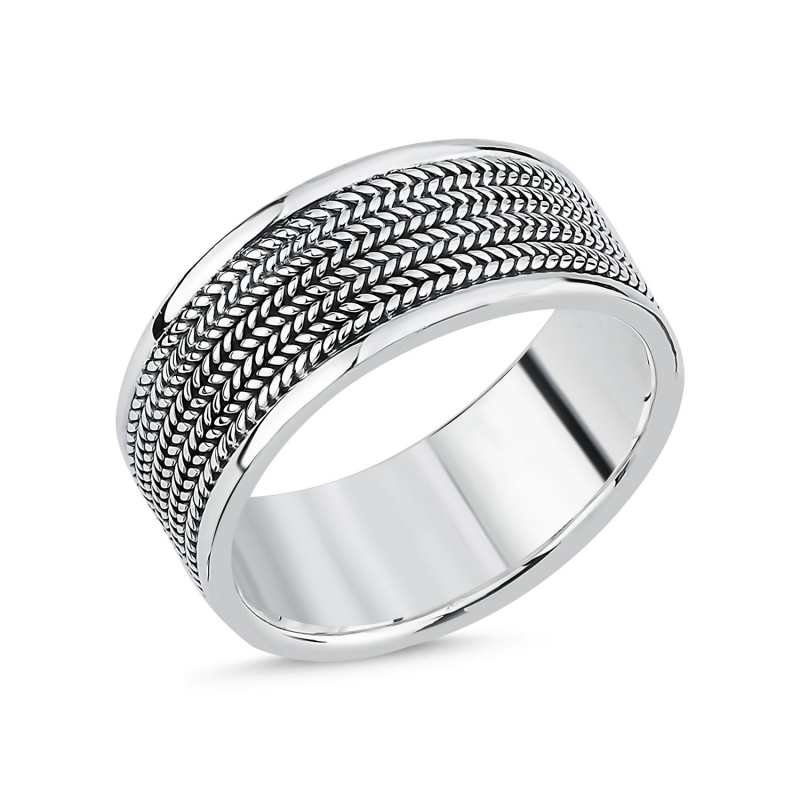 Oksitli Örgü Desenli Gümüş Erkek Yüzük