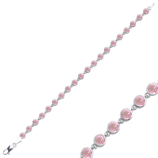 Rodyum Kaplama Pembe Yuvarlak Zirkon Taşlı Suyolu Gümüş Bayan Bileklik