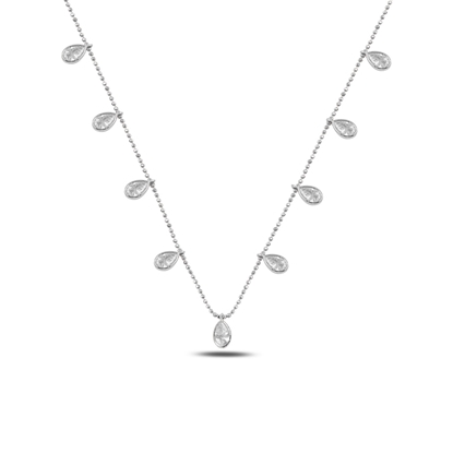 Rodyum Kaplama Dorica Top & Zirkon Taşlı Gümüş Bayan Kolye