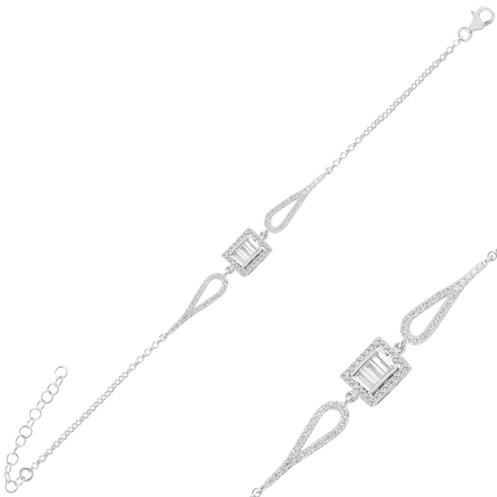 Rodyum Kaplama Baget Zirkon Taşlı Gümüş Bayan Bileklik