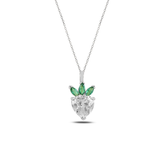 Rodyum Kaplama Çilek & Kalp Zirkon Taşlı Gümüş Bayan Kolye