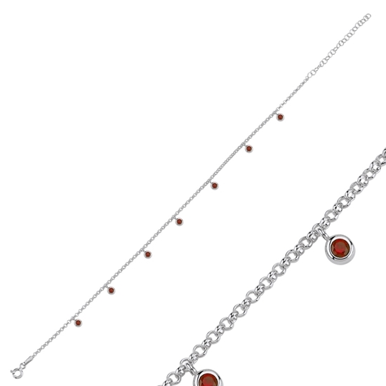 Rodyum Kaplama Garnet Zirkon Taşlı Doç Zincirli Sallantılı Halhal