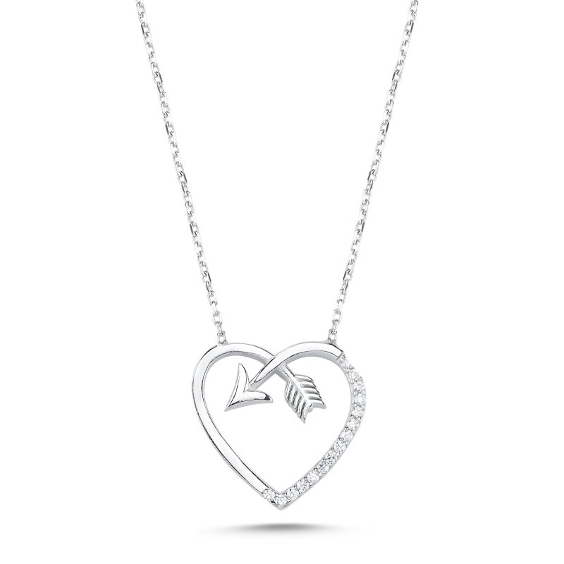 Rodyum Kaplama Kalp & Ok Zirkon Taşlı Gümüş Bayan Kolye