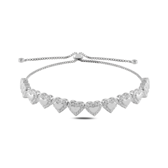 Rodyum Kaplama Kalp Zirkon Taşlı Gümüş Bayan Asansörlü Bileklik