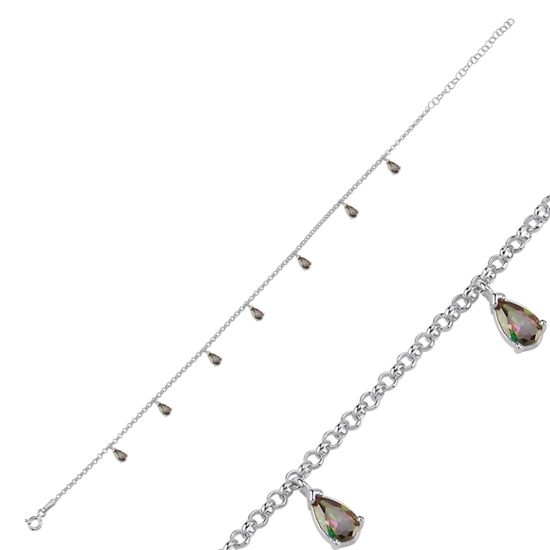 Rodyum Kaplama Mistik Topaz Zirkon Taşlı Doç Zincirli Sallantılı Şans Gümüş Bayan Bileklik