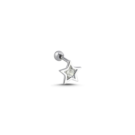 Rodyum Kaplama Yıldız Zirkon Taşlı Tragus Gümüş Küpe