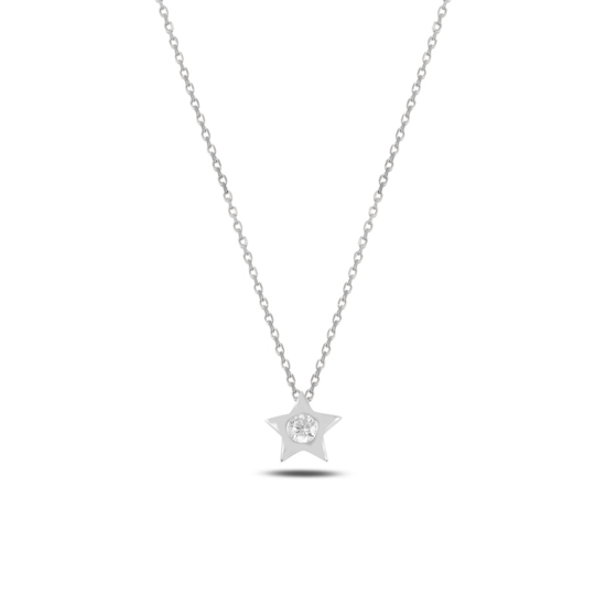 Rodyum Kaplama Yıldız Zirkon Tektaş Gümüş Bayan Kolye