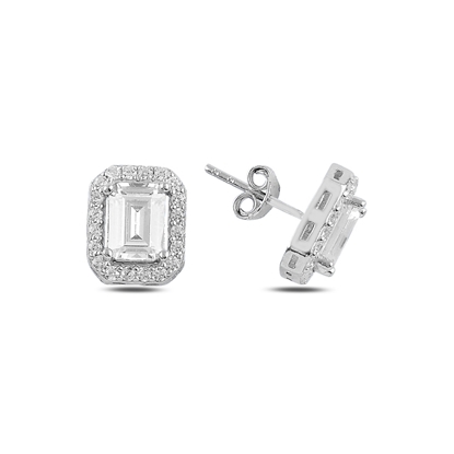 Rodyum Kaplama Kare Zirkon Tektaş Gümüş Küpe