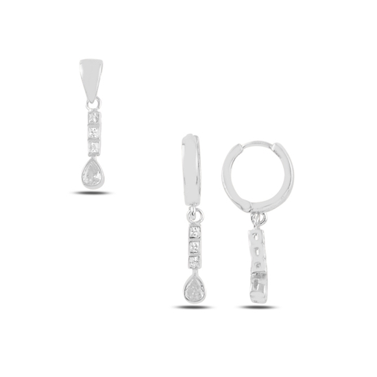 Rodyum Kaplama Zirkon Taşlı Sallatılı Hagi Gümüş Bayan Set