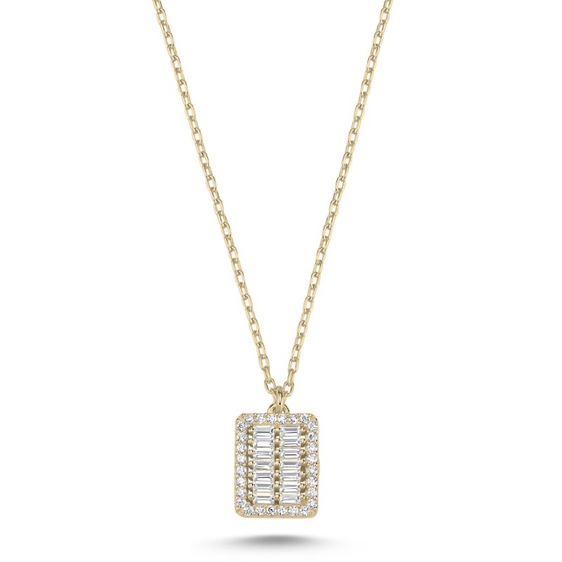 Rose Kaplama Baget Zirkon Taşlı Gümüş Bayan Kolye
