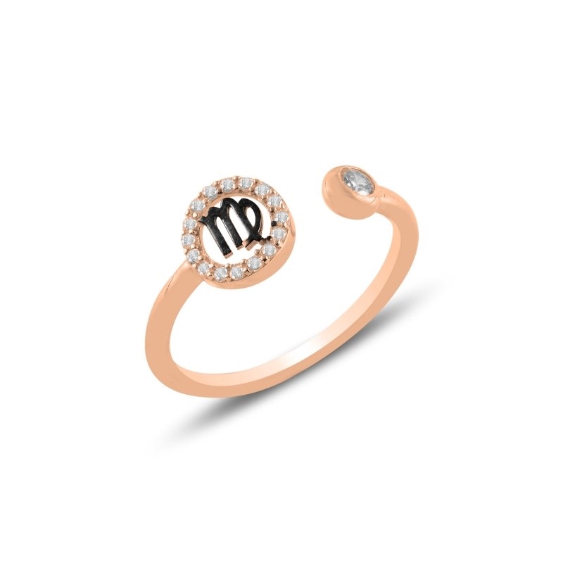 Rose Kaplama Başak Burcu Zirkon Taşlı Ayarlanabilir Boylu Gümüş Bayan Yüzük