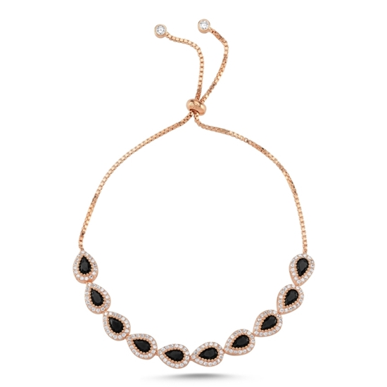Rose Kaplama Damla Siyah Zirkon Taşlı Gümüş Bayan Asansörlü Bileklik
