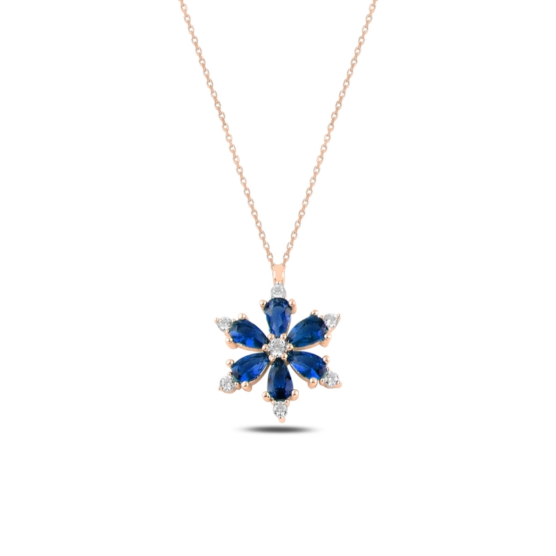 Rose Kaplama Lotus Çiçeği Safir Zirkon Taşlı Gümüş Bayan Kolye