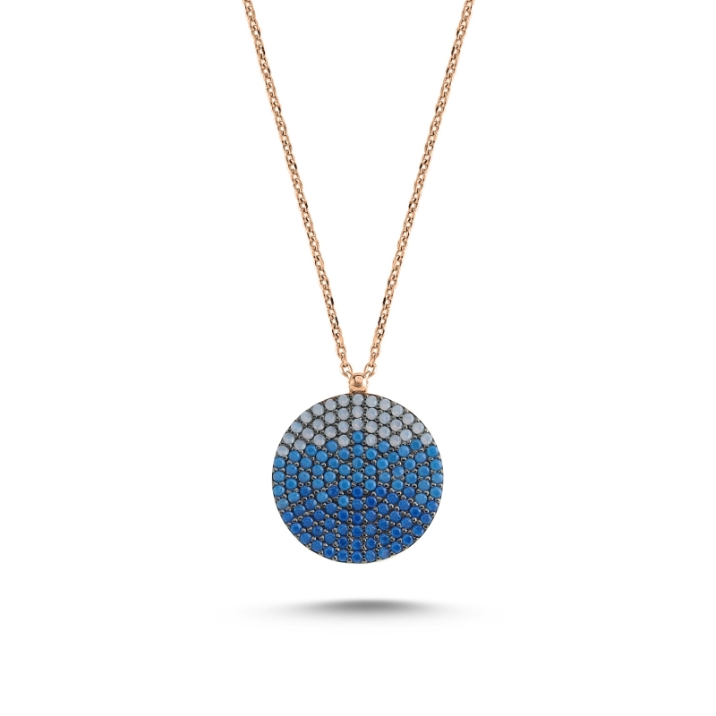 Rose Kaplama Nano Mavi Tonlama Taşlı Yuvarlak Gümüş Bayan Kolye