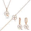 Rose Kaplama Yonca & Kalp Zirkon Taşlı Gümüş Bayan Set