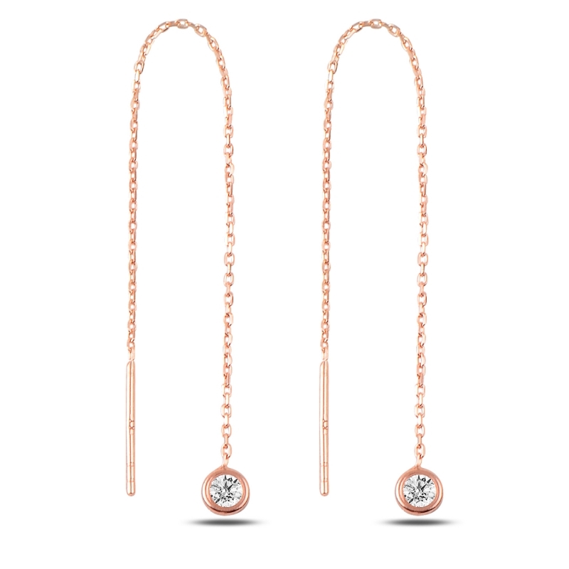 Rose Kaplama Zirkon Taşlı Japon Gümüş Küpe