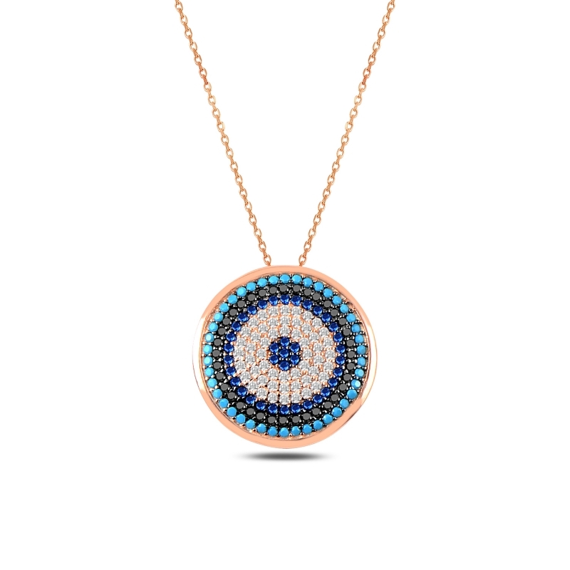 Rose Kaplama Zirkon Taşlı Sosyete Gözlü Gümüş Bayan Kolye