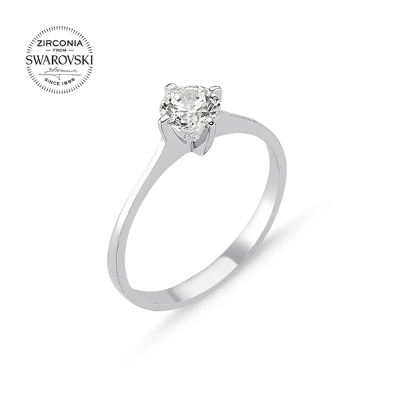 Rodyum Kaplama Swarovski Zirkon Taşlı Tektaş Gümüş Bayan Yüzük