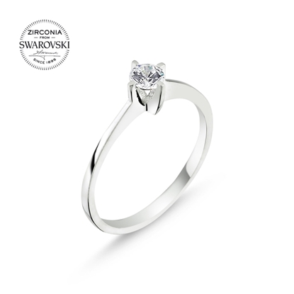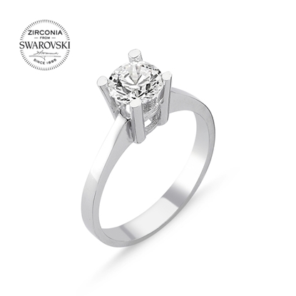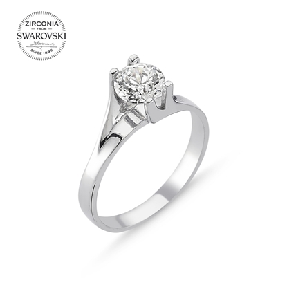 Rodyum Kaplama Swarovski Zirkon Taşlı Tektaş Gümüş Bayan Yüzük