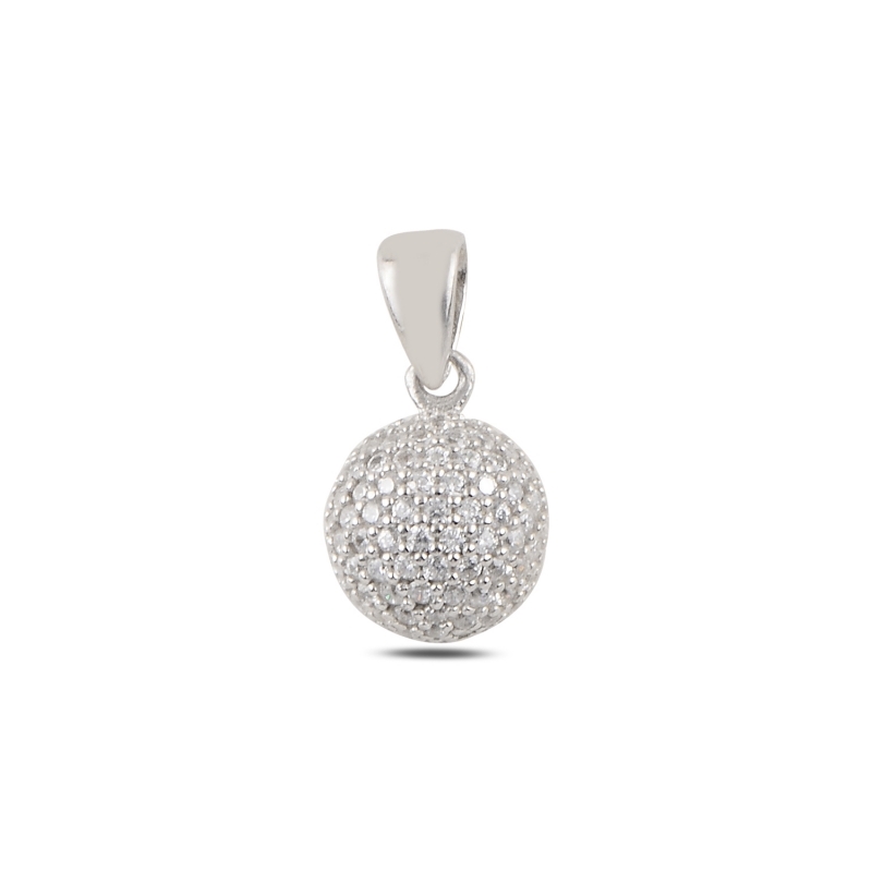 Rodyum Kaplama Yarım Top Zirkon Taşlı Gümüş Bayan Kolye Ucu