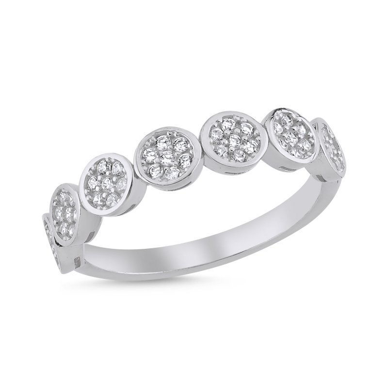 Rodyum Kaplama Yarım Tur Zirkon Taşlı Gümüş Bayan Yüzük