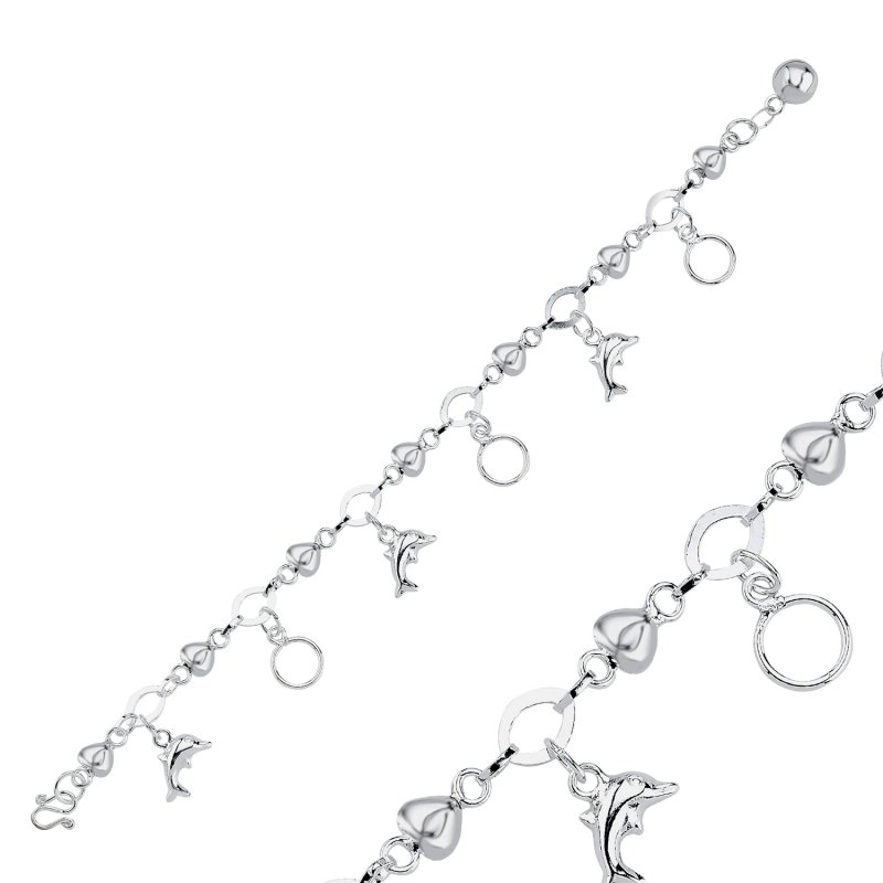 Yunus Balığı Taşsız Sallantılı Gümüş Bayan Bileklik