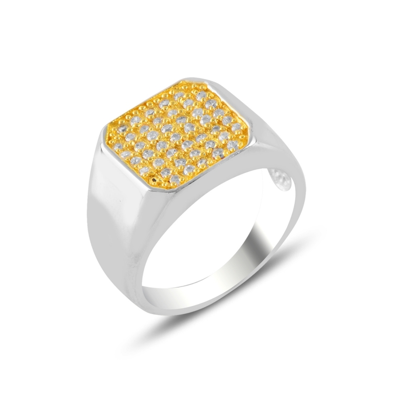 Rodyum Kaplama Zirkon Taşlı Gümüş Erkek Yüzük